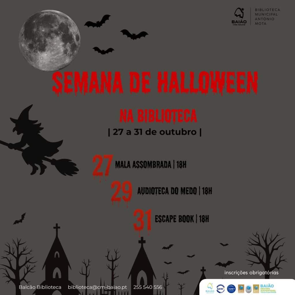 A Biblioteca Municipal António Mota, em Baião, vai assinalar a “Semana de Halloween” entre os dias 27 e 31 de outubro de 2025, com um conjunto de atividades temáticas destinadas a famílias e grupos de amigos.