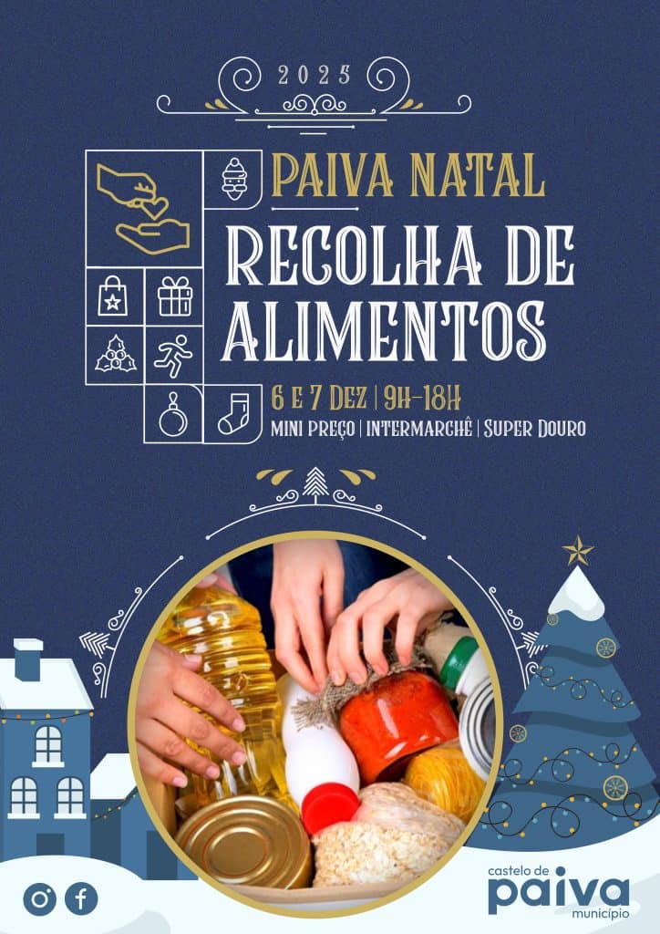 A Rede Social de Castelo de Paiva vai promover, nos dias 6 e 7 de dezembro, uma campanha de recolha de bens alimentares em vários supermercados do concelho, com o objetivo de apoiar agregados familiares em situação de maior vulnerabilidade durante o período festivo.