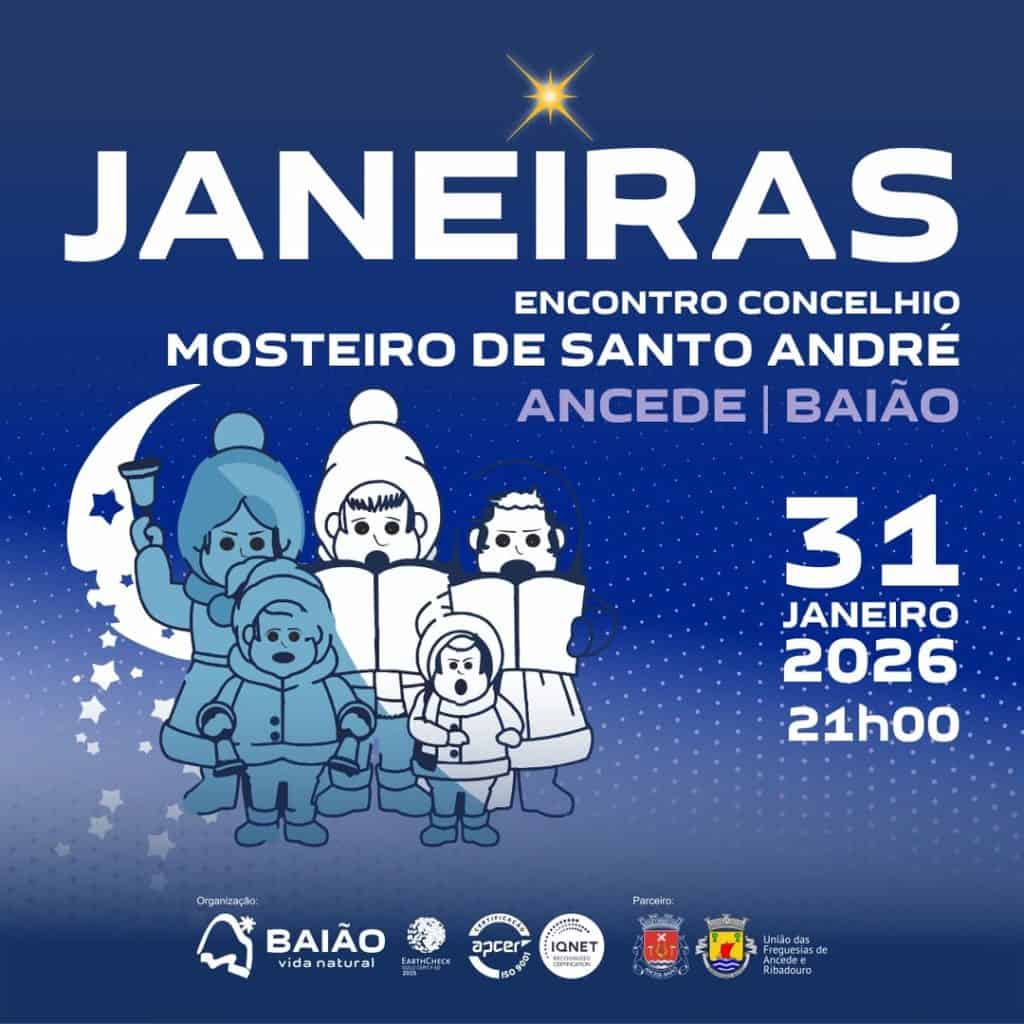 O 24.º Encontro Concelhio de Cantadores de Janeiras realiza-se no próximo sábado, dia 31 de janeiro, pelas 21h00. O evento terá lugar na Tenda do Mosteiro de Santo André de Ancede, em Baião.