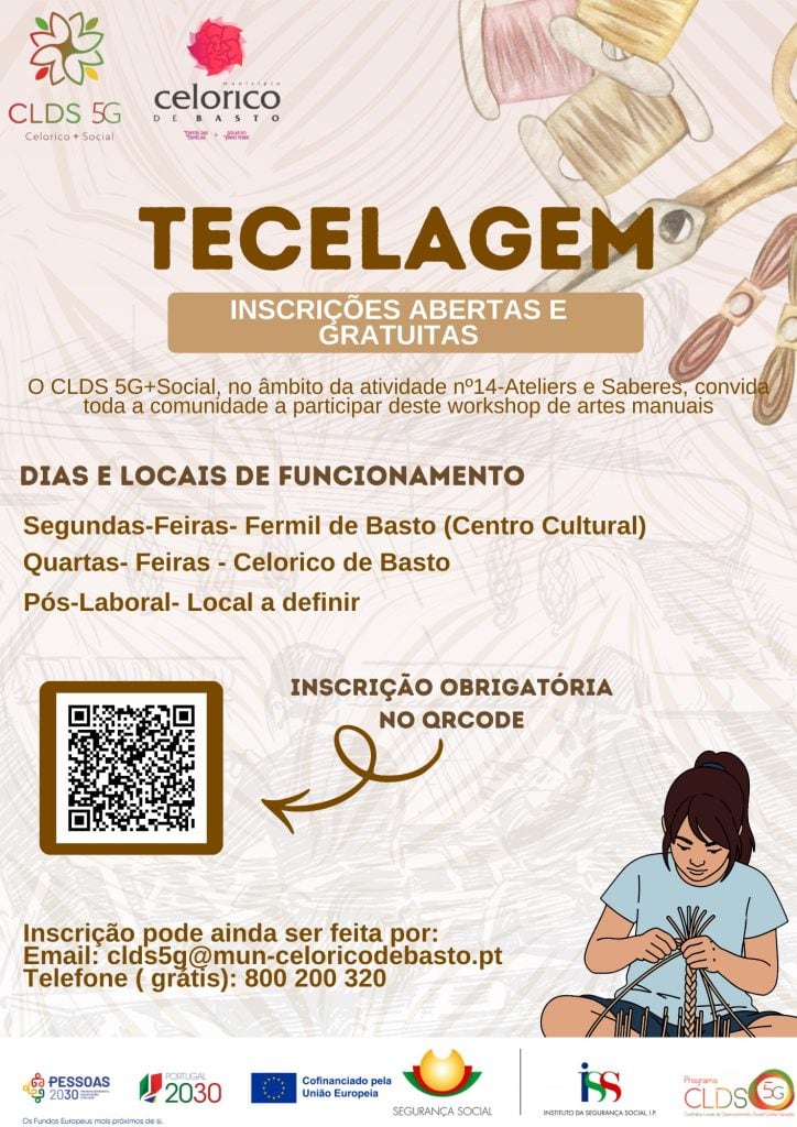 O projeto CLDS 5G Celorico+Social está a promover três workshops de artes manuais gratuitos e abertos a toda a comunidade: Costura Criativa, Tecelagem e Bordados. A iniciativa, inserida na “Atividade nº14 – Ateliers e Saberes”, visa fomentar o saber-fazer tradicional, estimular a criatividade e criar novas oportunidades de ocupação e valorização pessoal e comunitária.