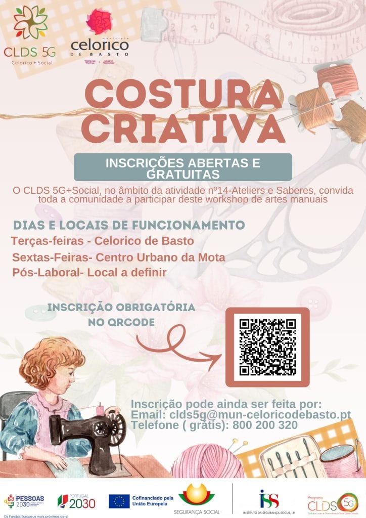 - Costura Criativa: Terças-feiras em Celorico de Basto e sextas-feiras no Centro Urbano da Mota.